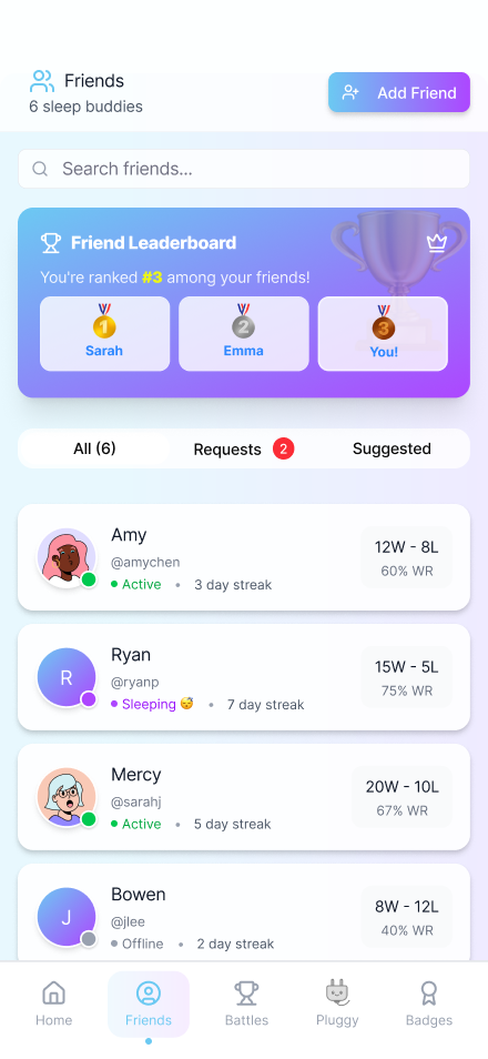 Clean, friendly interface that makes tracking progress and challenging friends effortless and fun.
